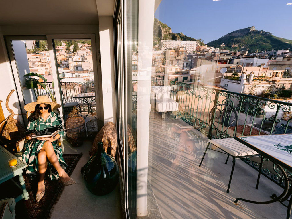 As golden hour arrives, the terrace comes alive with the warm hues of Etna and the sunsets that this extraordinary landscape gifts to the eyes and soul.