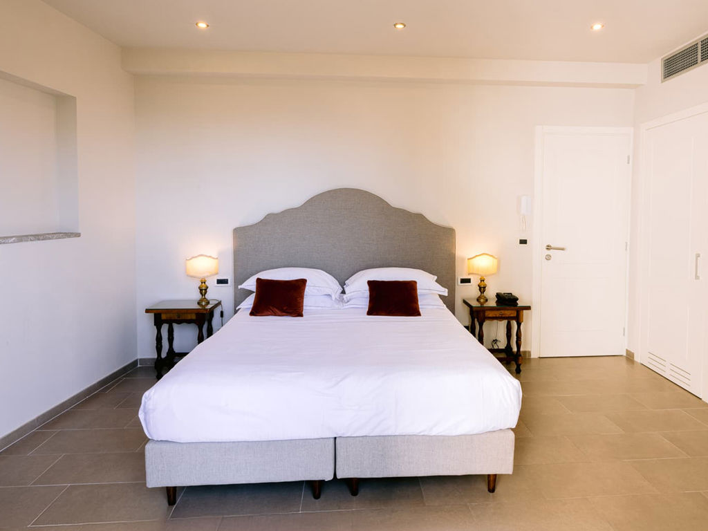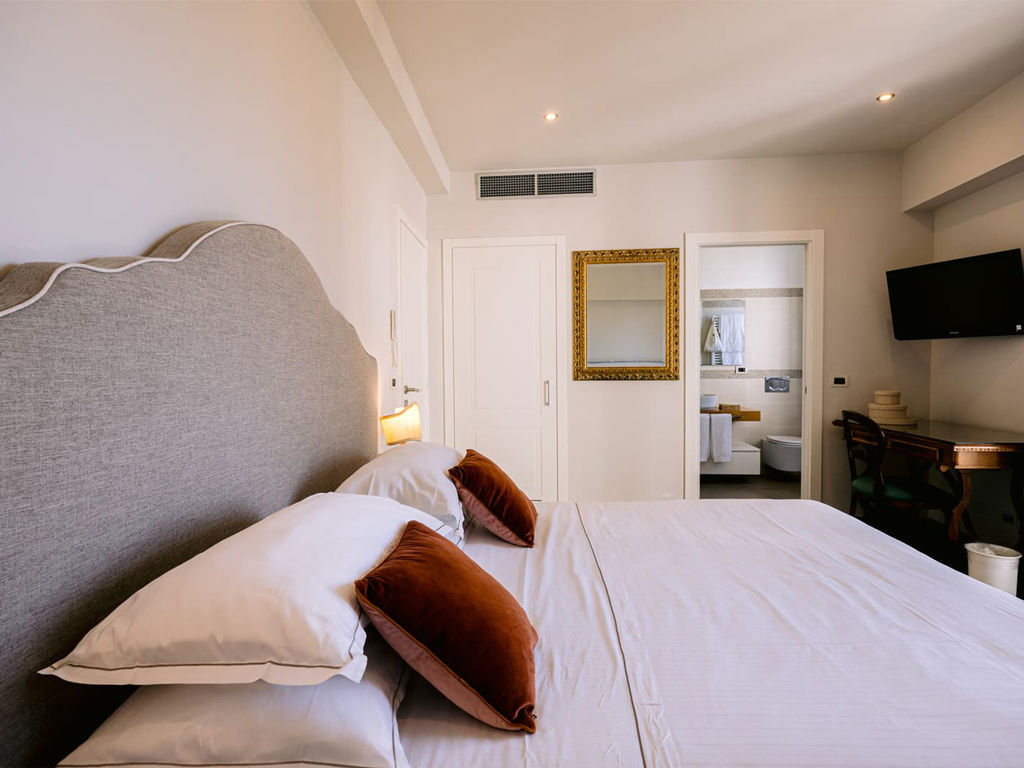 The design of the room is refined and welcoming, with a large double bed, accompanied by high-quality, soft and comfortable linens, for a regenerating sleep. Furniture is stylish and functional The large balcony overlooks the public gardens and tennis courts.