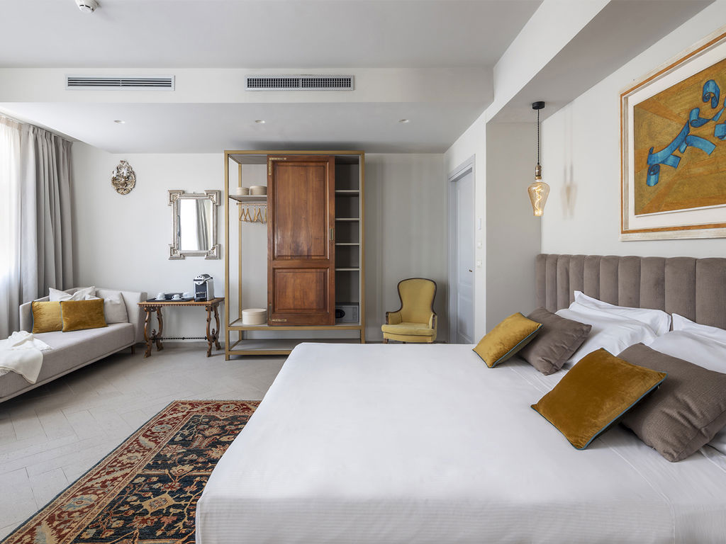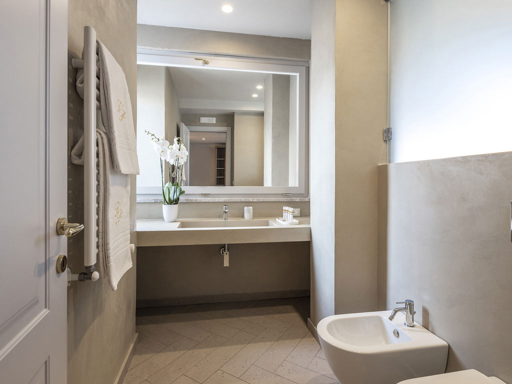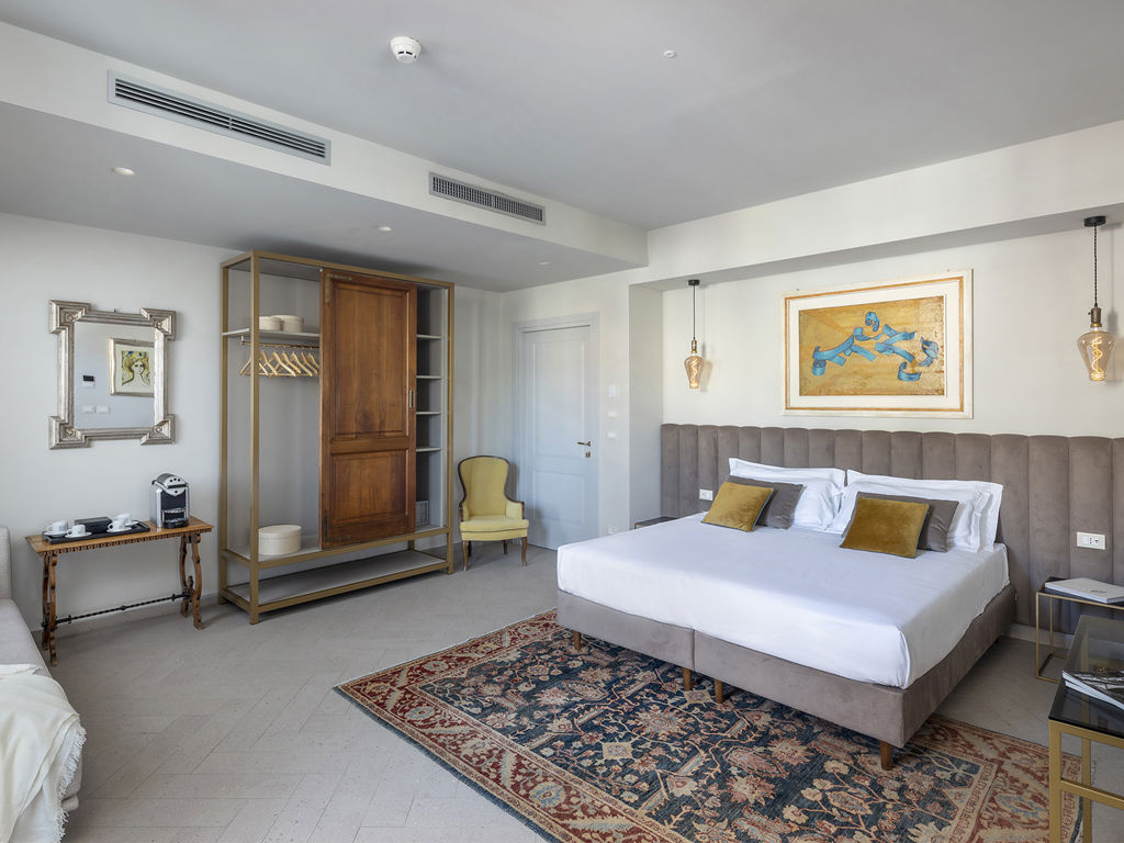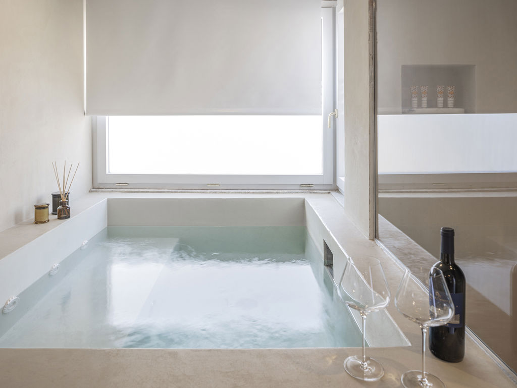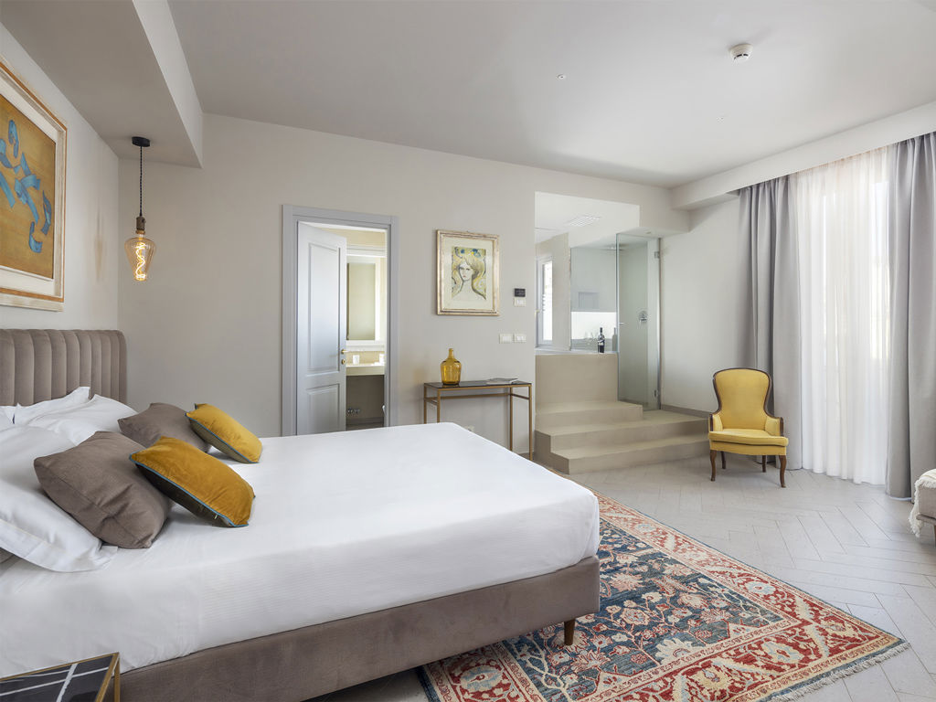 This room is a true corner of luxury, designed to offer maximum comfort and relaxation. Characterized by a private hot tub, the room is ideal for those looking for an exclusive and intimate experience, where you can enjoy moments of pure well-being without sacrificing privacy and style. The hot tub, equipped with hydromassage jets, is the perfect place to relax. The room is spacious and bright, equipped with a king-size bed, air conditioning, free Wi-Fi, flat-screen TV, minibar, kettle and coffee maker.