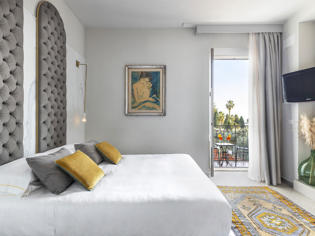 Il letto è dotato di biancheria di alta qualità, per garantire un riposo ottimale. Il balcone si affaccia sui campi da tennis e sui giardini pubblici. Il bagno è spazioso e moderno, dotato di doccia, asciugamani morbidi e prodotti da bagno di qualità.